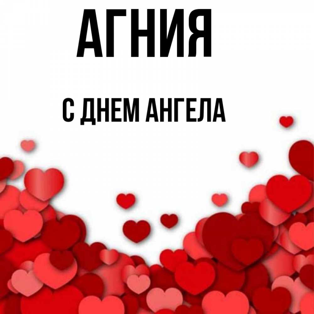 Открытка Агния С днем ангела. сердечки и подпись. хорошего настроения