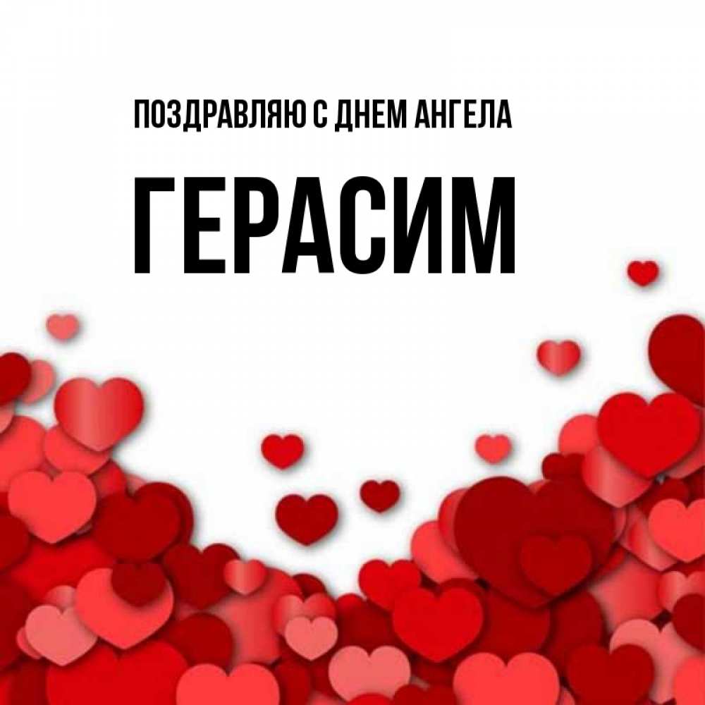 Открытка Поздравляю с днем Ангела Герасим. сердечки и подпись. хорошего настроения