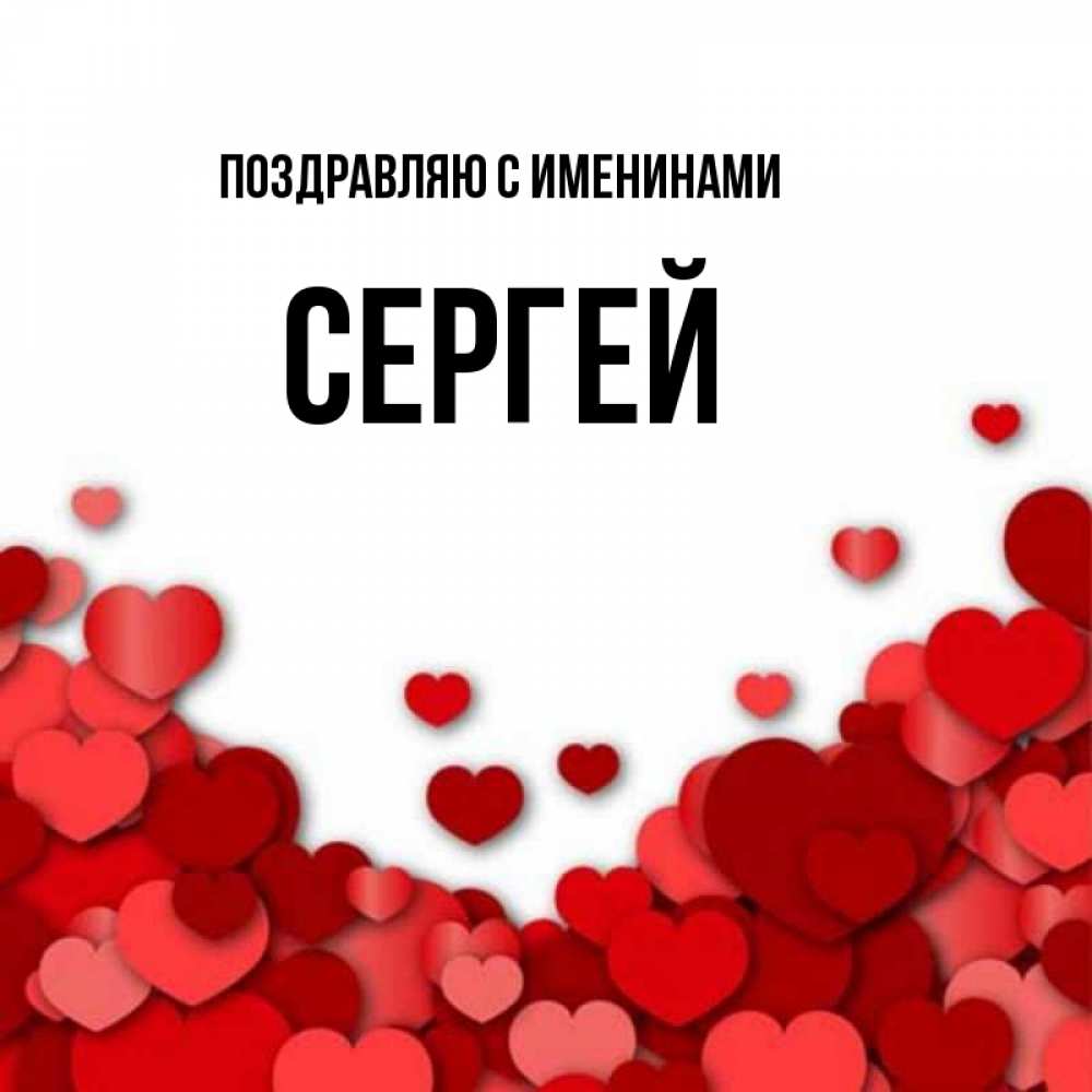 Открытка Поздравляю с именинами Сергей. сердечки и подпись. хорошего настроения