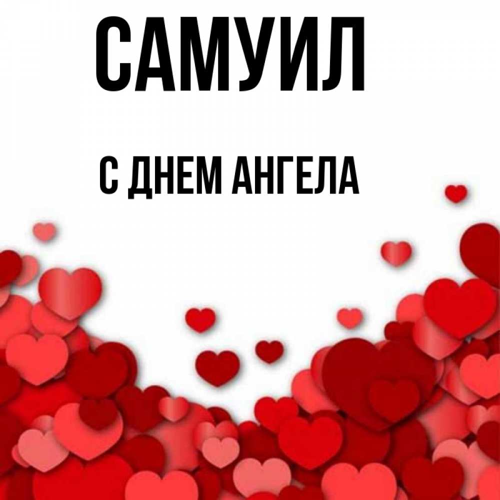 Открытка Самуил С днем ангела. сердечки и подпись. хорошего настроения
