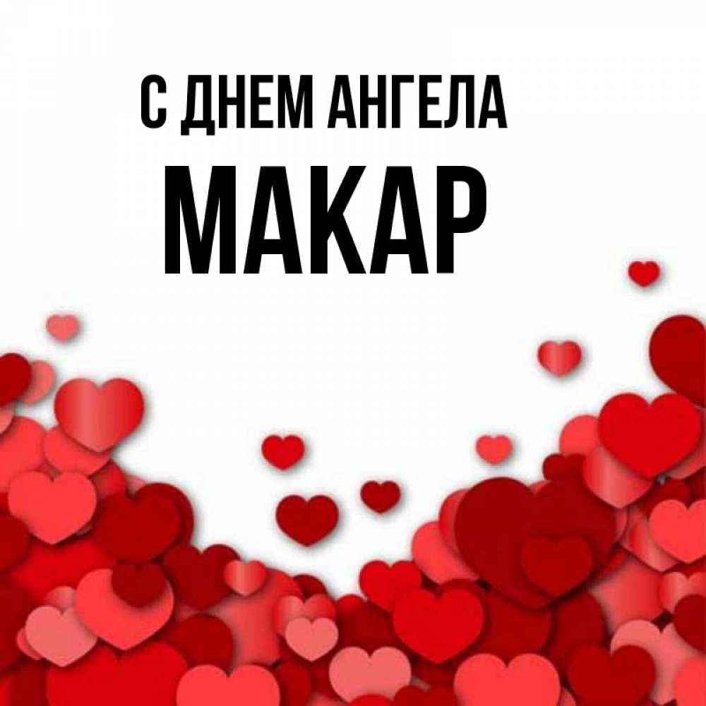 Открытка С днем Ангела Макар. сердечки и подпись. хорошего настроения
