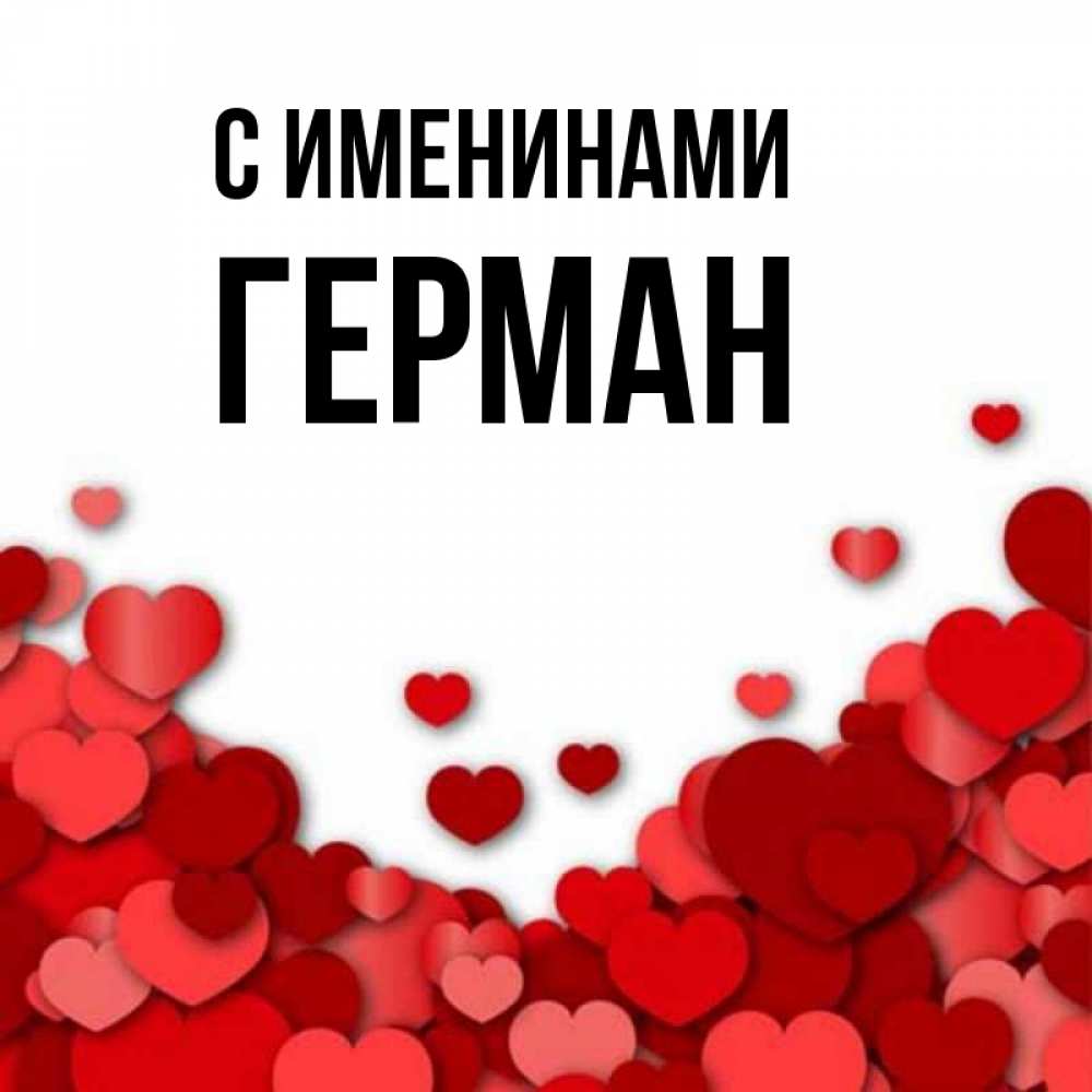 Открытка С именинами Герман. сердечки и подпись. хорошего настроения