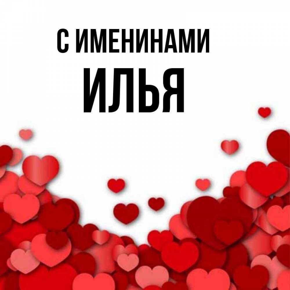 Открытка С именинами Илья. сердечки и подпись. хорошего настроения