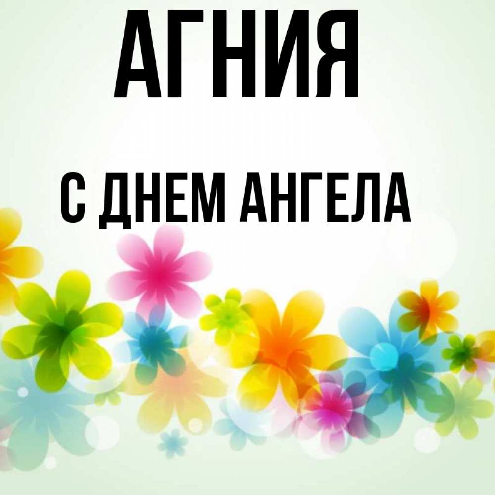 Открытка Агния С днем ангела. разноцветные цветы. позитивные цветочки