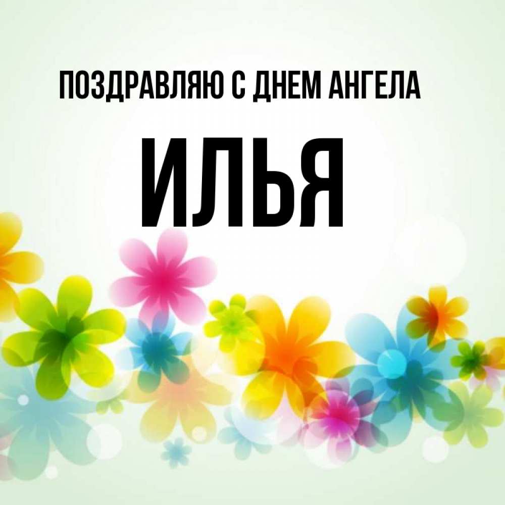 Открытка Поздравляю с днем Ангела Илья. разноцветные цветы. позитивные цветочки