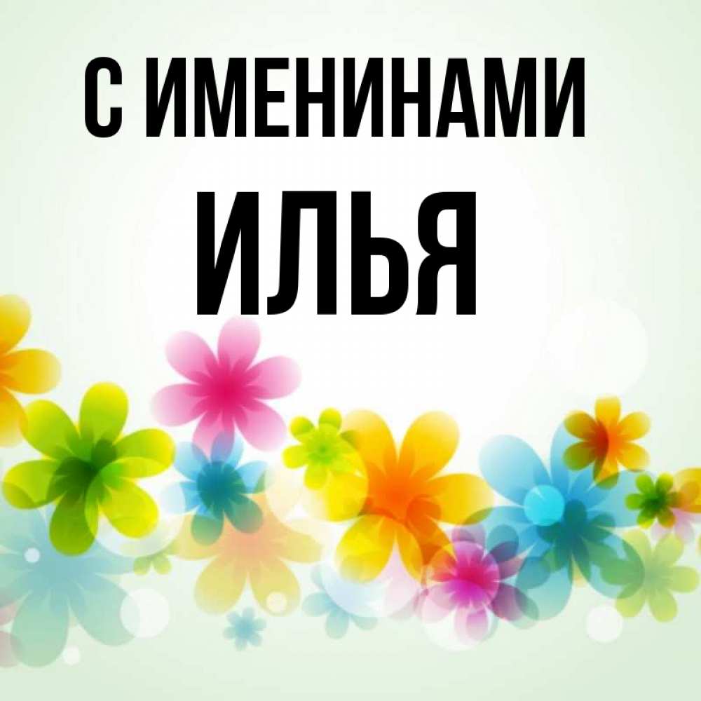 Открытка С именинами Илья. разноцветные цветы. позитивные цветочки