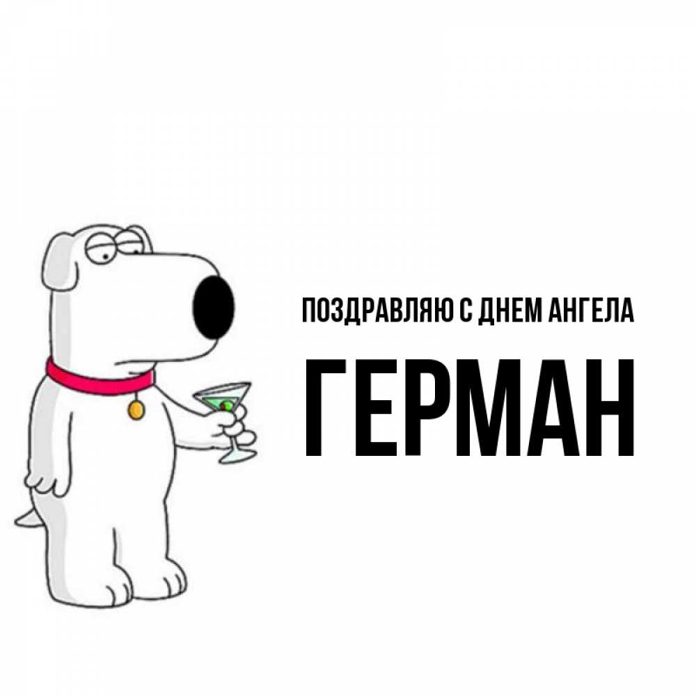 Открытка Поздравляю с днем Ангела Герман. собака с рюмкой. герои мультфильмов белый пес