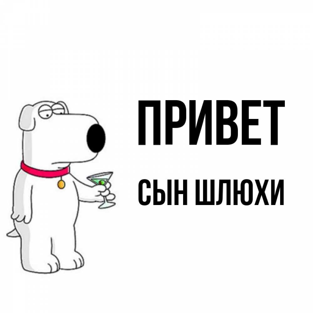 Открытка Привет Сын шлюхи. собака с рюмкой. герои мультфильмов белый пес