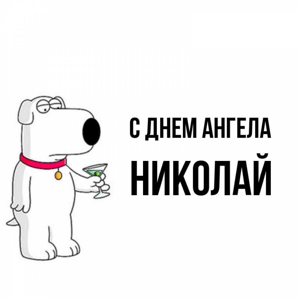 Открытка С днем Ангела Николай. собака с рюмкой. герои мультфильмов белый пес