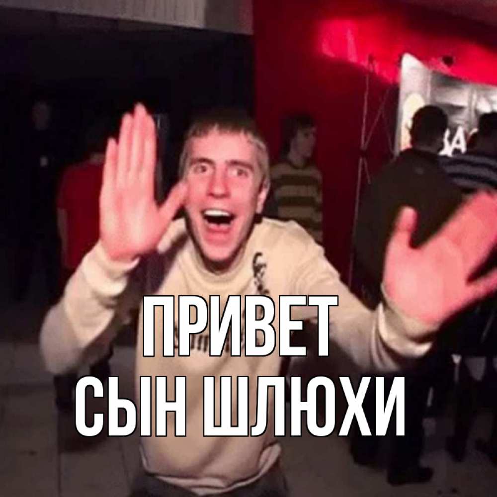 Открытка Привет Сын шлюхи. позитивный парень. танец с улыбкой