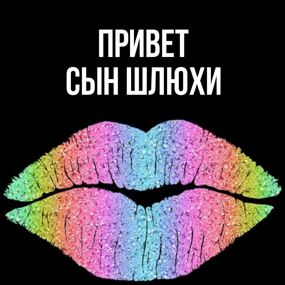 Открытка Привет Сын шлюхи. утренний поцелуй на черном фоне. радужные губы