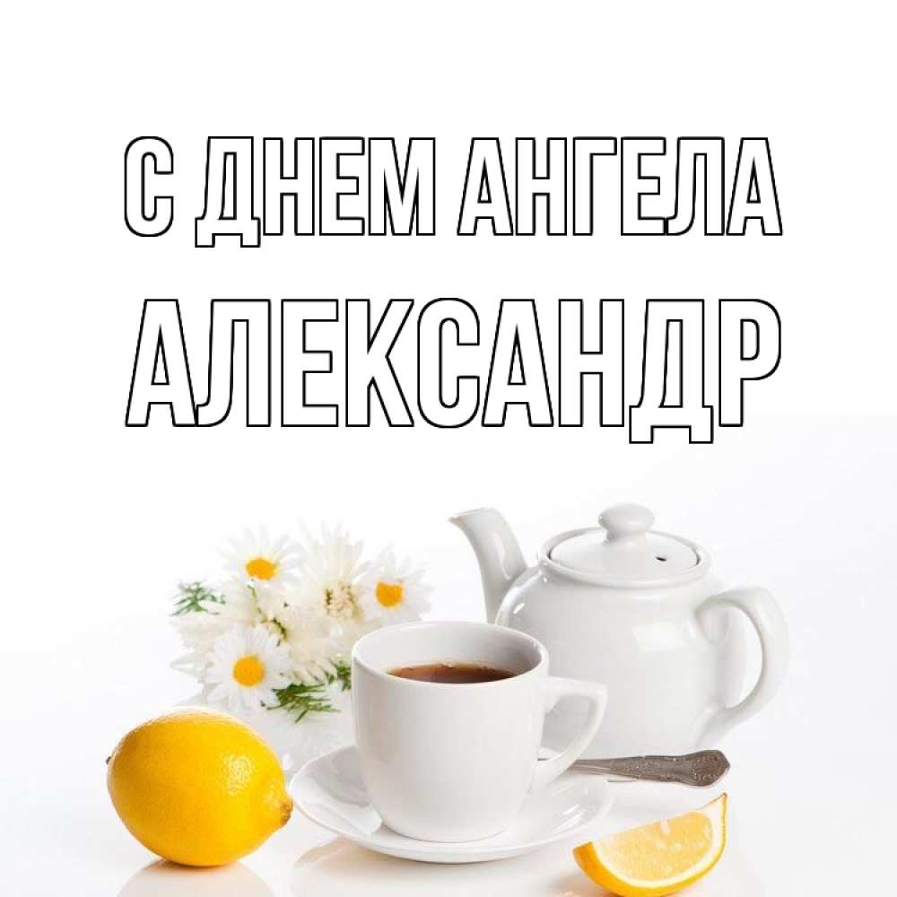 Открытка С днем Ангела Александр. цветы на фоне голубого неба. сиреневые цветы