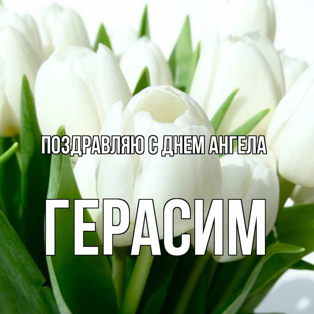 Открытка Поздравляю с днем Ангела Герасим. тюльпаны белые крупным планом. открытки на каждый день по именам
