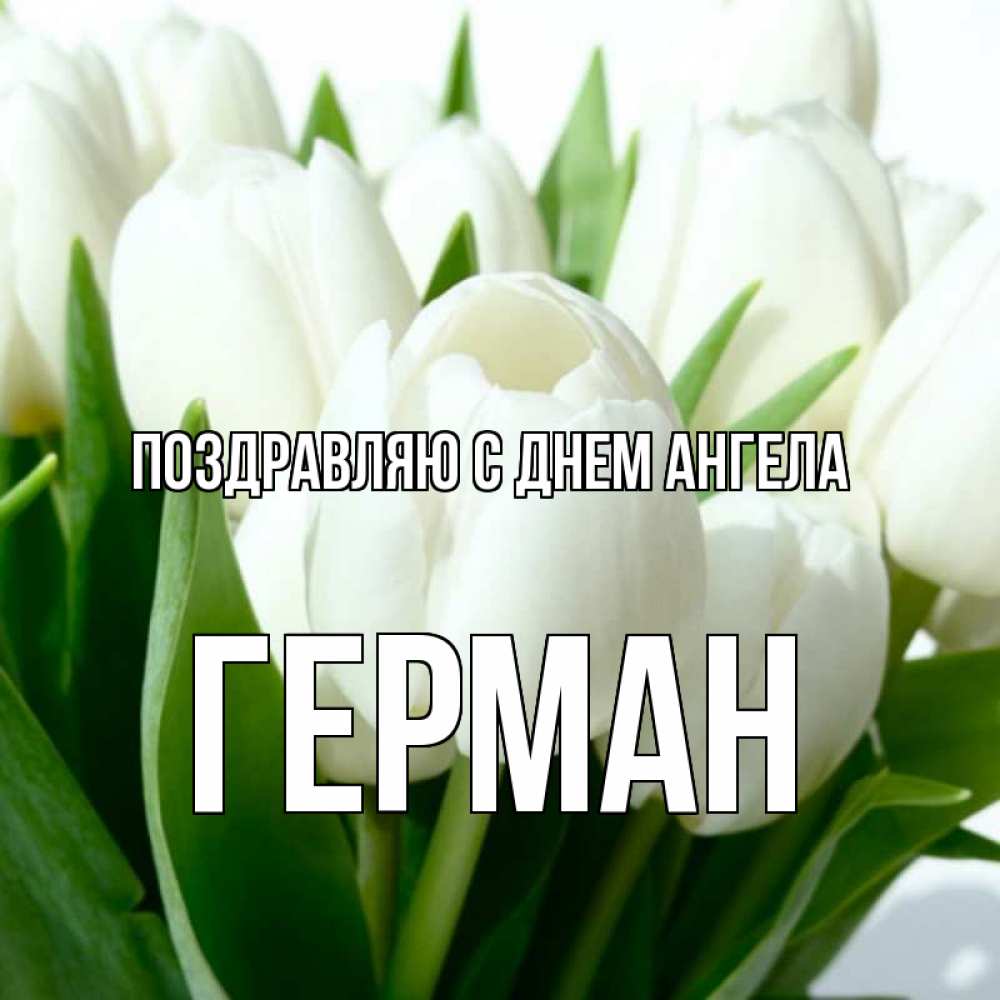 Открытка Поздравляю с днем Ангела Герман. тюльпаны белые крупным планом. открытки на каждый день по именам