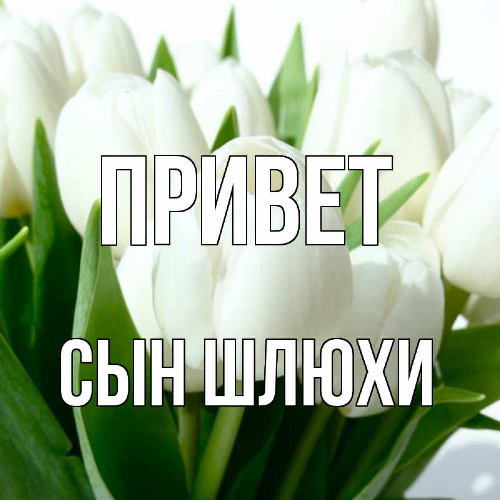 Открытка Привет Сын шлюхи. тюльпаны белые крупным планом. открытки на каждый день по именам
