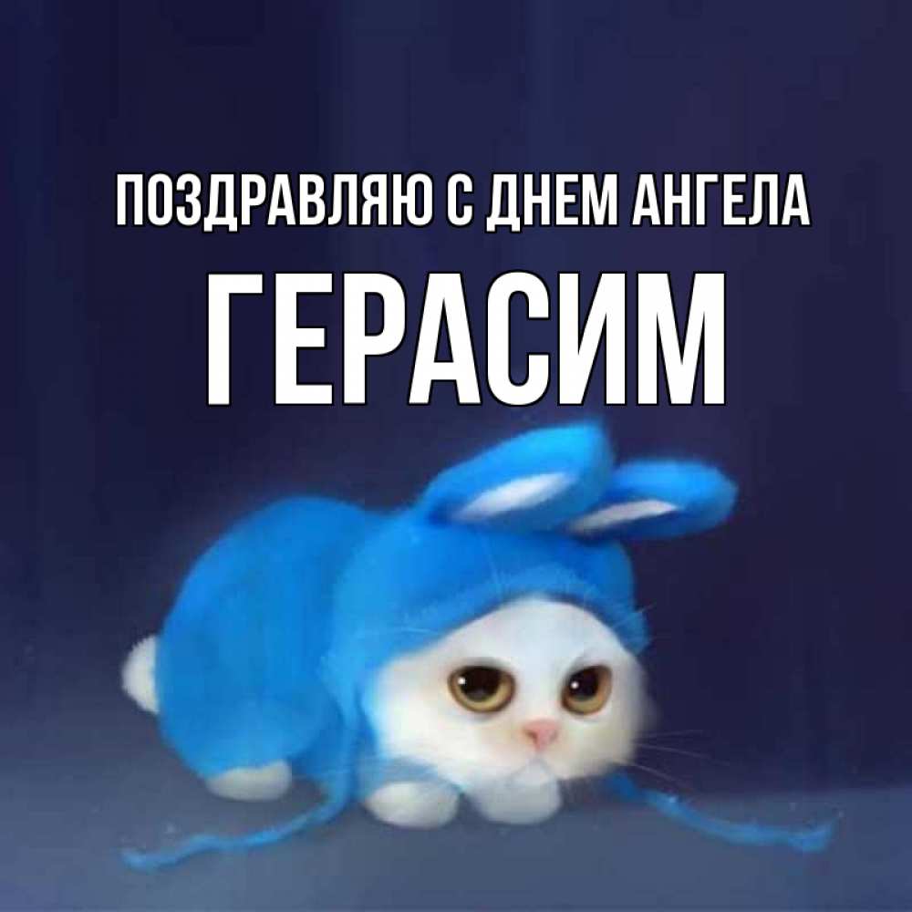 Открытка Поздравляю с днем Ангела Герасим. котозаяц в синем костюме. открытки красивые скачать бесплатно