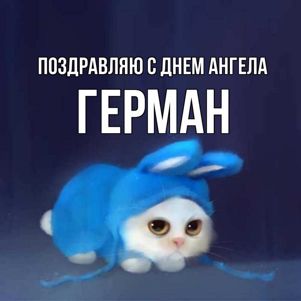 Открытка Поздравляю с днем Ангела Герман. котозаяц в синем костюме. открытки красивые скачать бесплатно