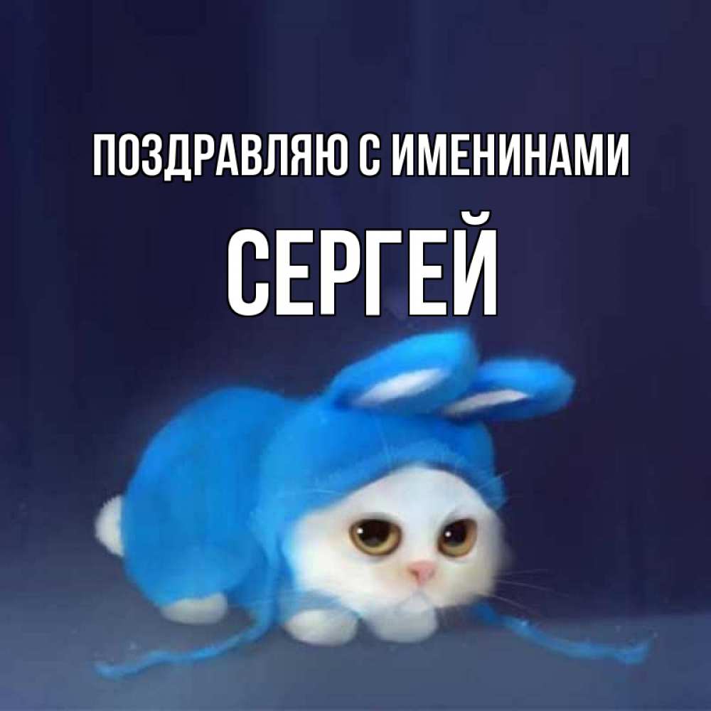 Открытка Поздравляю с именинами Сергей. котозаяц в синем костюме. открытки красивые скачать бесплатно