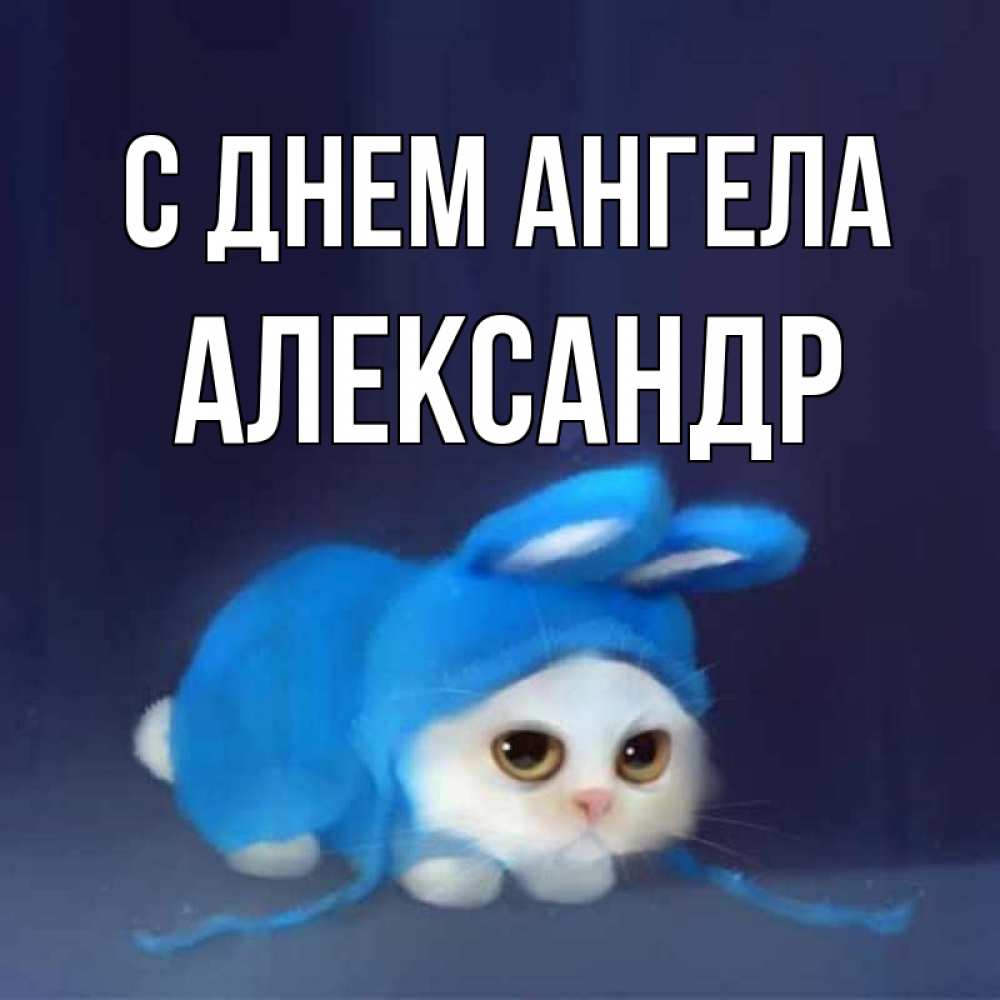 Открытка С днем Ангела Александр. котозаяц в синем костюме. открытки красивые скачать бесплатно