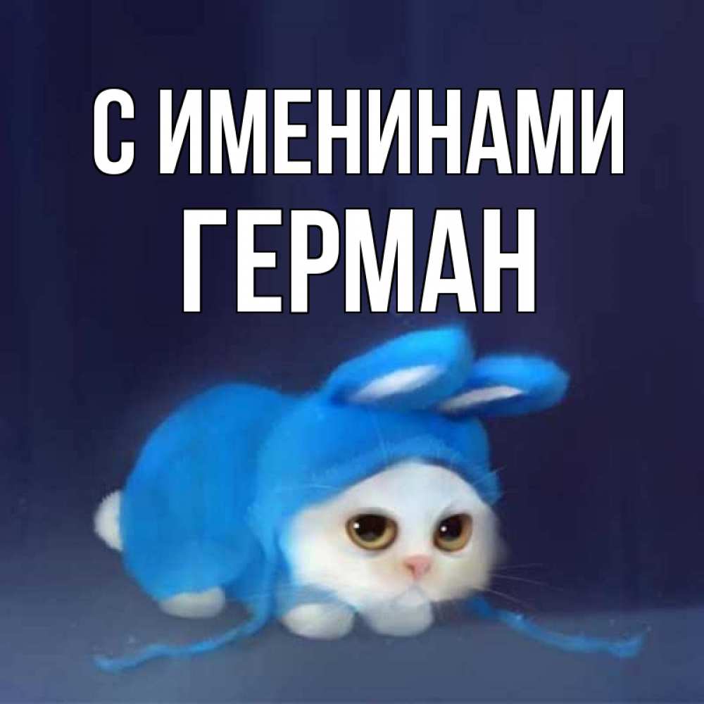 Открытка С именинами Герман. котозаяц в синем костюме. открытки красивые скачать бесплатно