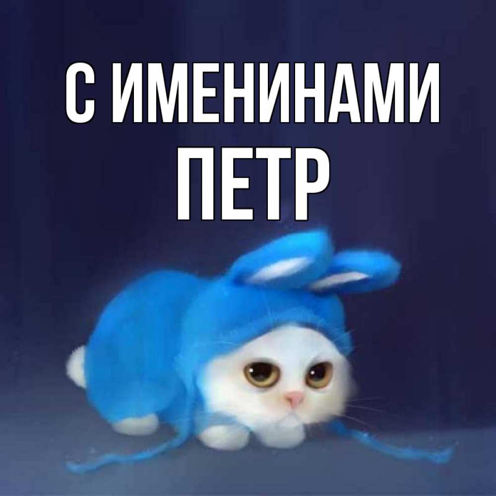 Открытка С именинами Петр. котозаяц в синем костюме. открытки красивые скачать бесплатно