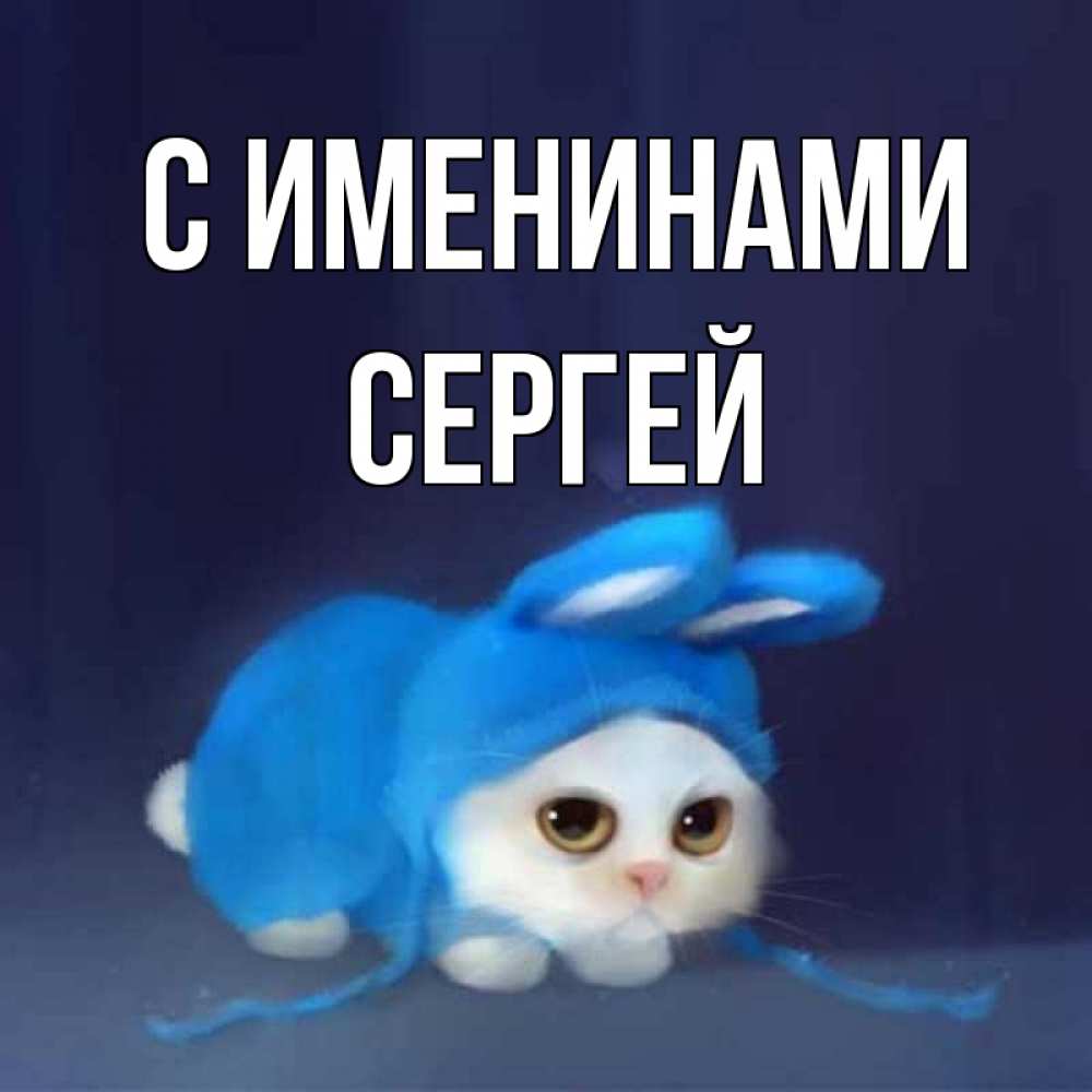 Открытка С именинами Сергей. котозаяц в синем костюме. открытки красивые скачать бесплатно