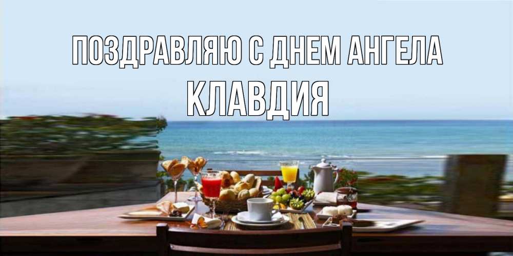 Открытка Поздравляю с днем Ангела Клавдия. завтрак с видом на море. море, завтрак