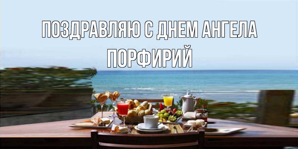 Открытка Поздравляю с днем Ангела Порфирий. завтрак с видом на море. море, завтрак