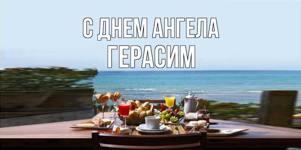 Открытка С днем Ангела Герасим. завтрак с видом на море. море, завтрак