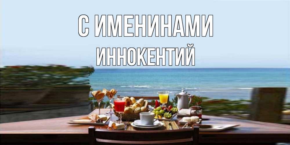 Открытка С именинами Иннокентий. завтрак с видом на море. море, завтрак