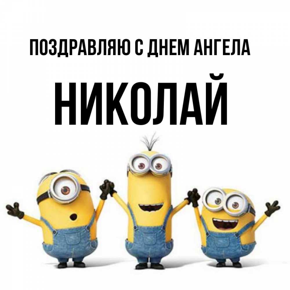 Открытка Поздравляю с днем Ангела Николай. миньоны дарят хорошее настроение. бодренького утра