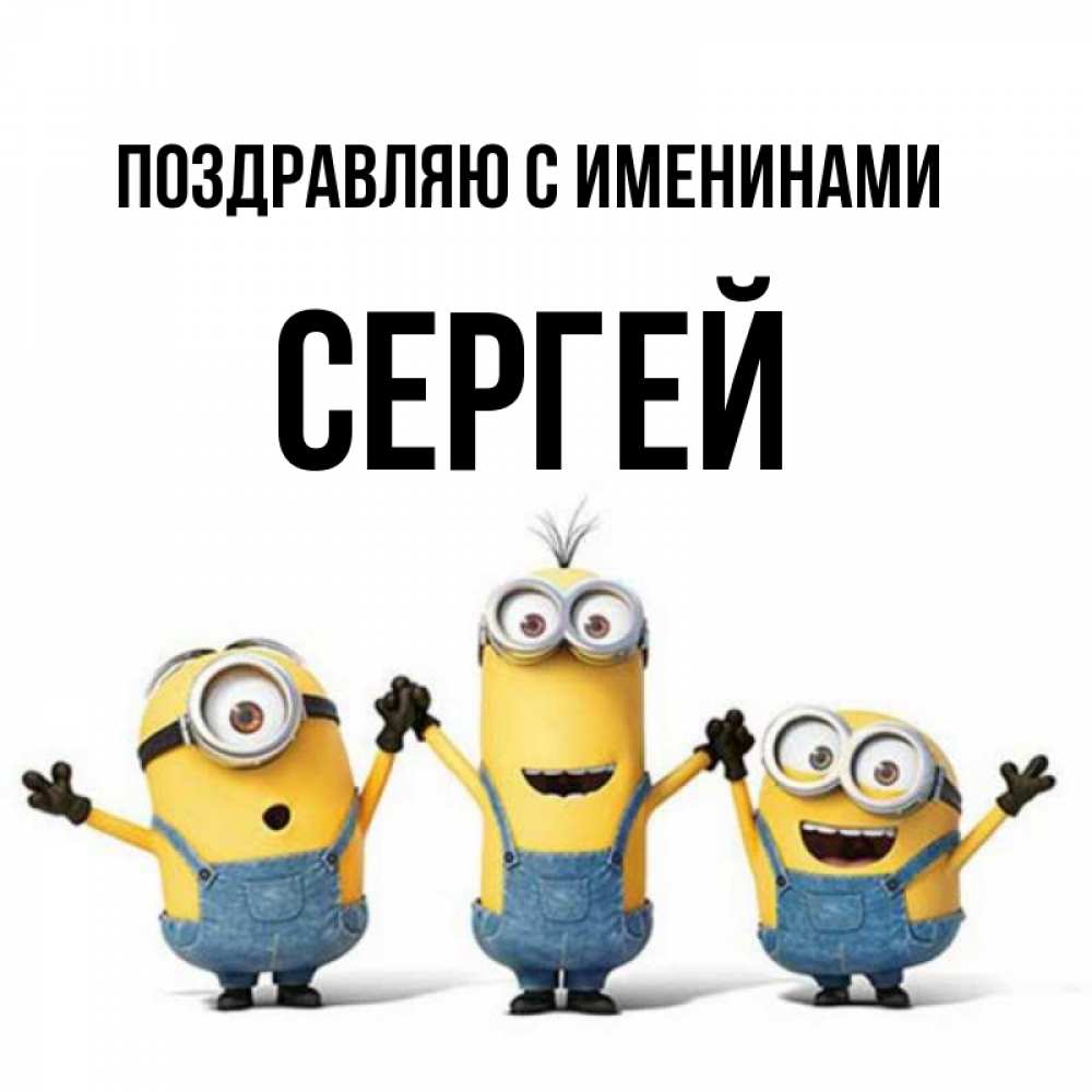 Открытка Поздравляю с именинами Сергей. миньоны дарят хорошее настроение. бодренького утра