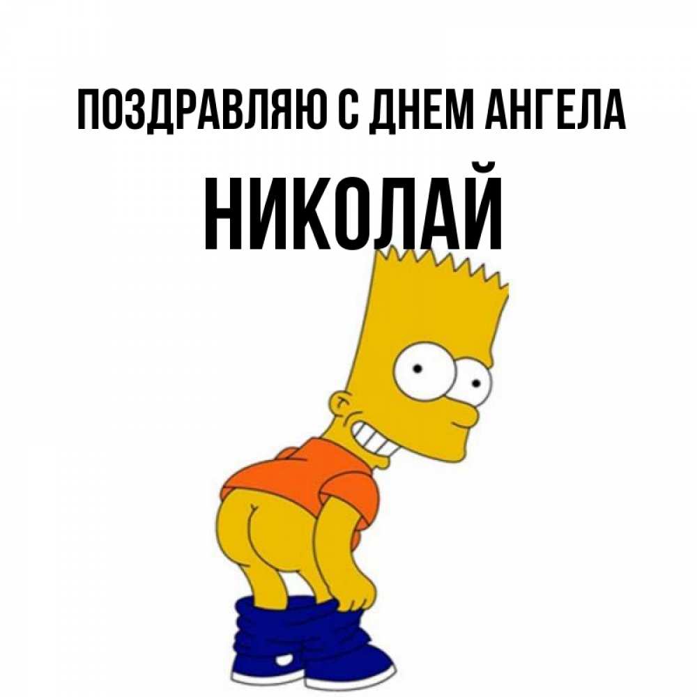 Открытка Поздравляю с днем Ангела Николай. симпсон показывает попу. Открытки с Симпсонами