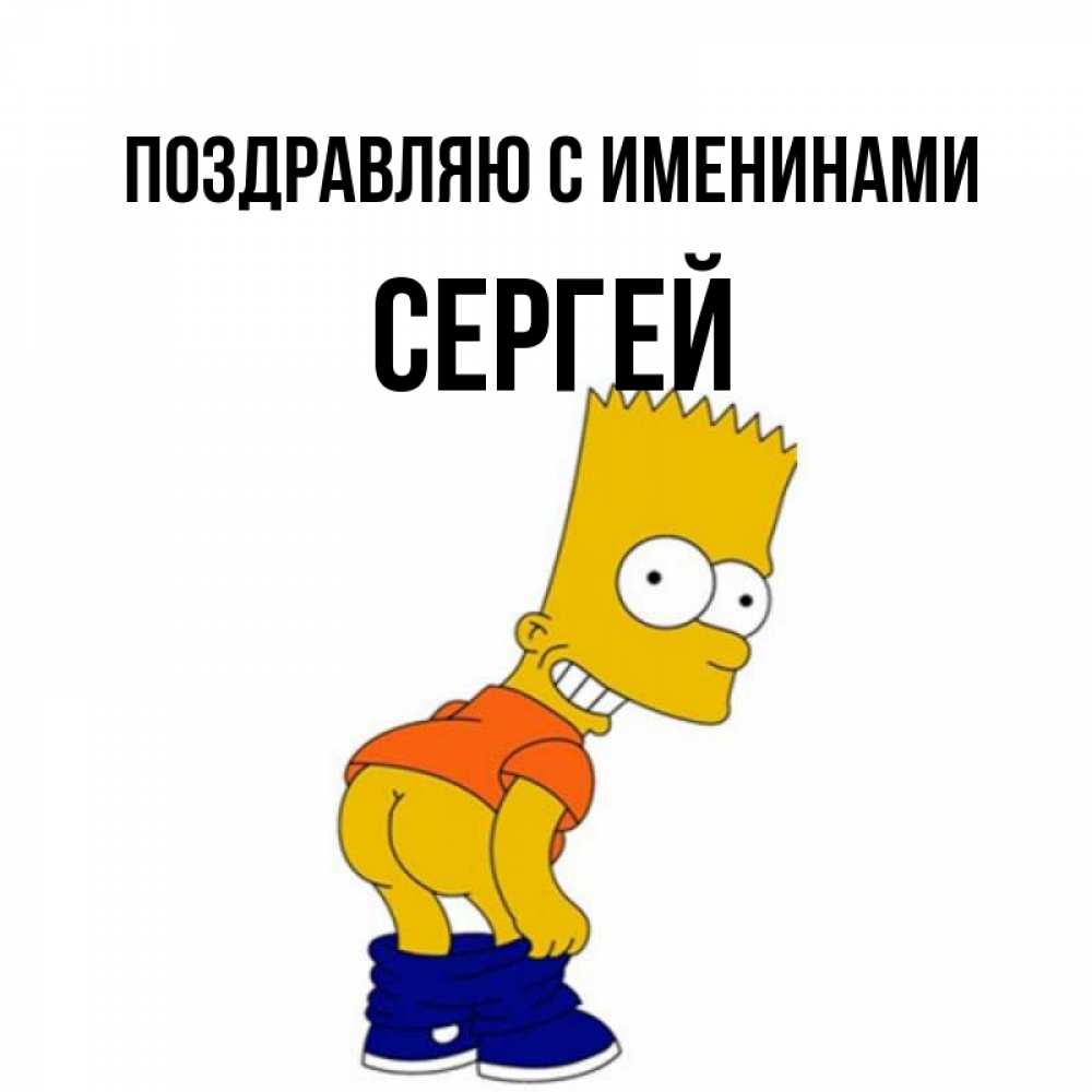 Открытка Поздравляю с именинами Сергей. симпсон показывает попу. Открытки с Симпсонами