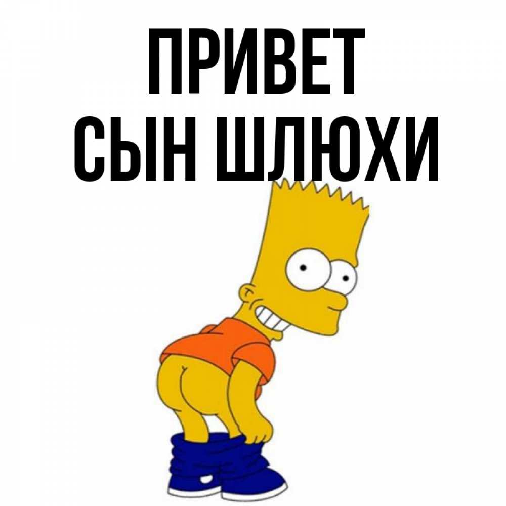 Открытка Привет Сын шлюхи. симпсон показывает попу. Открытки с Симпсонами