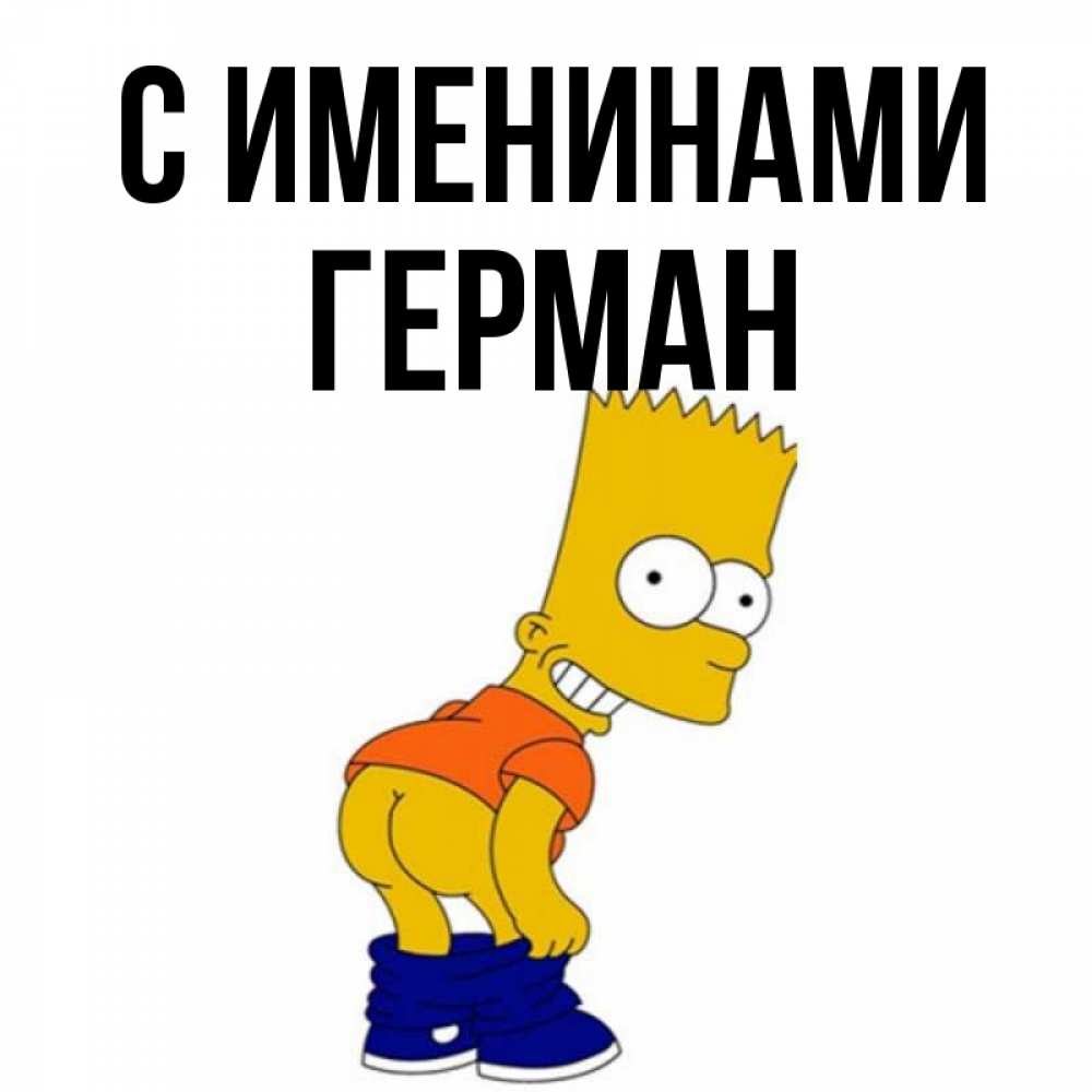 Открытка С именинами Герман. симпсон показывает попу. Открытки с Симпсонами
