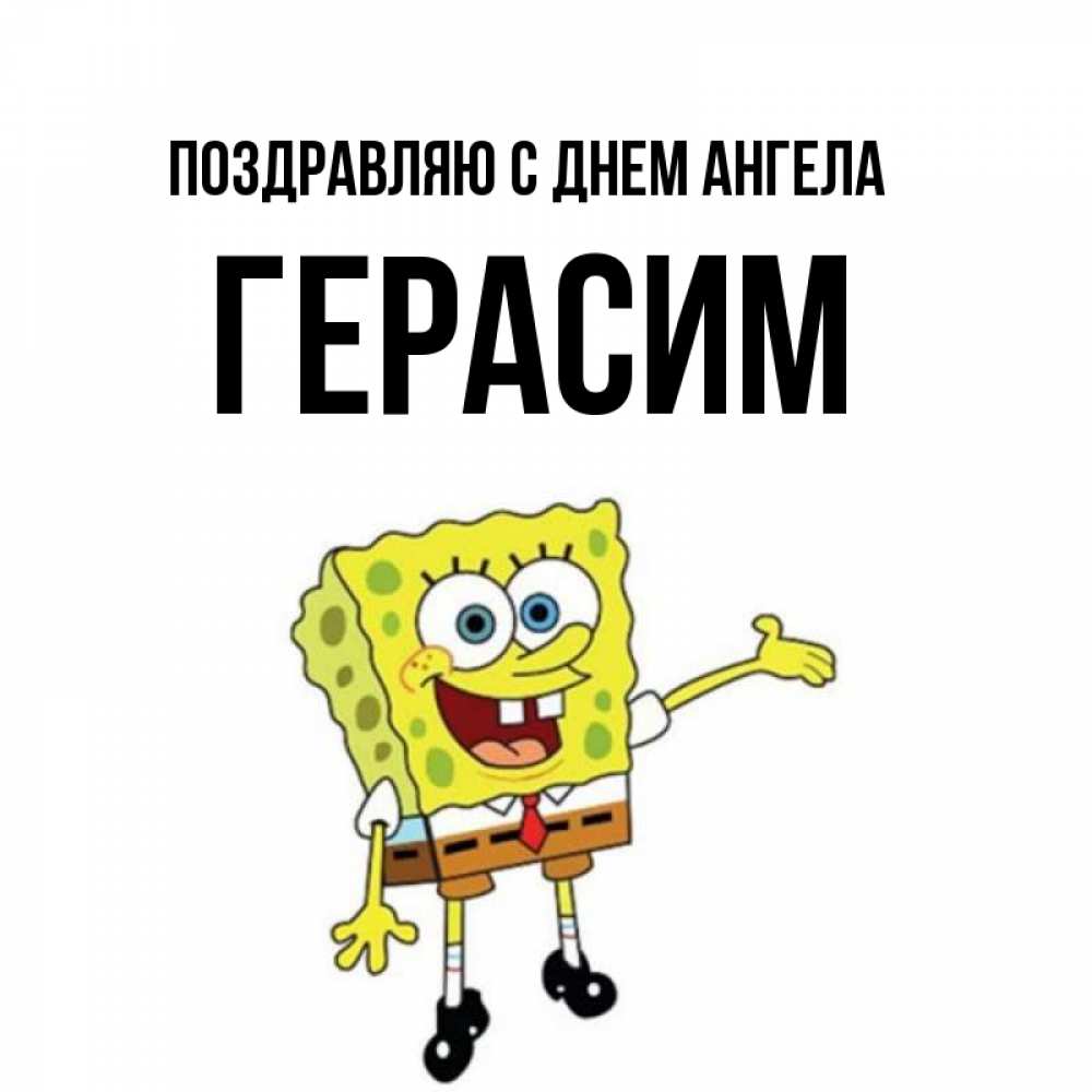 Открытка Поздравляю с днем Ангела Герасим. позитивный спанч Боб. губка боб улыбается