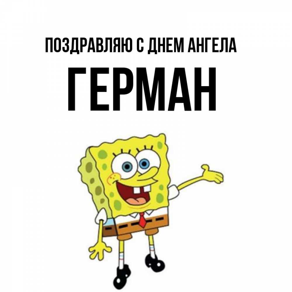 Открытка Поздравляю с днем Ангела Герман. позитивный спанч Боб. губка боб улыбается