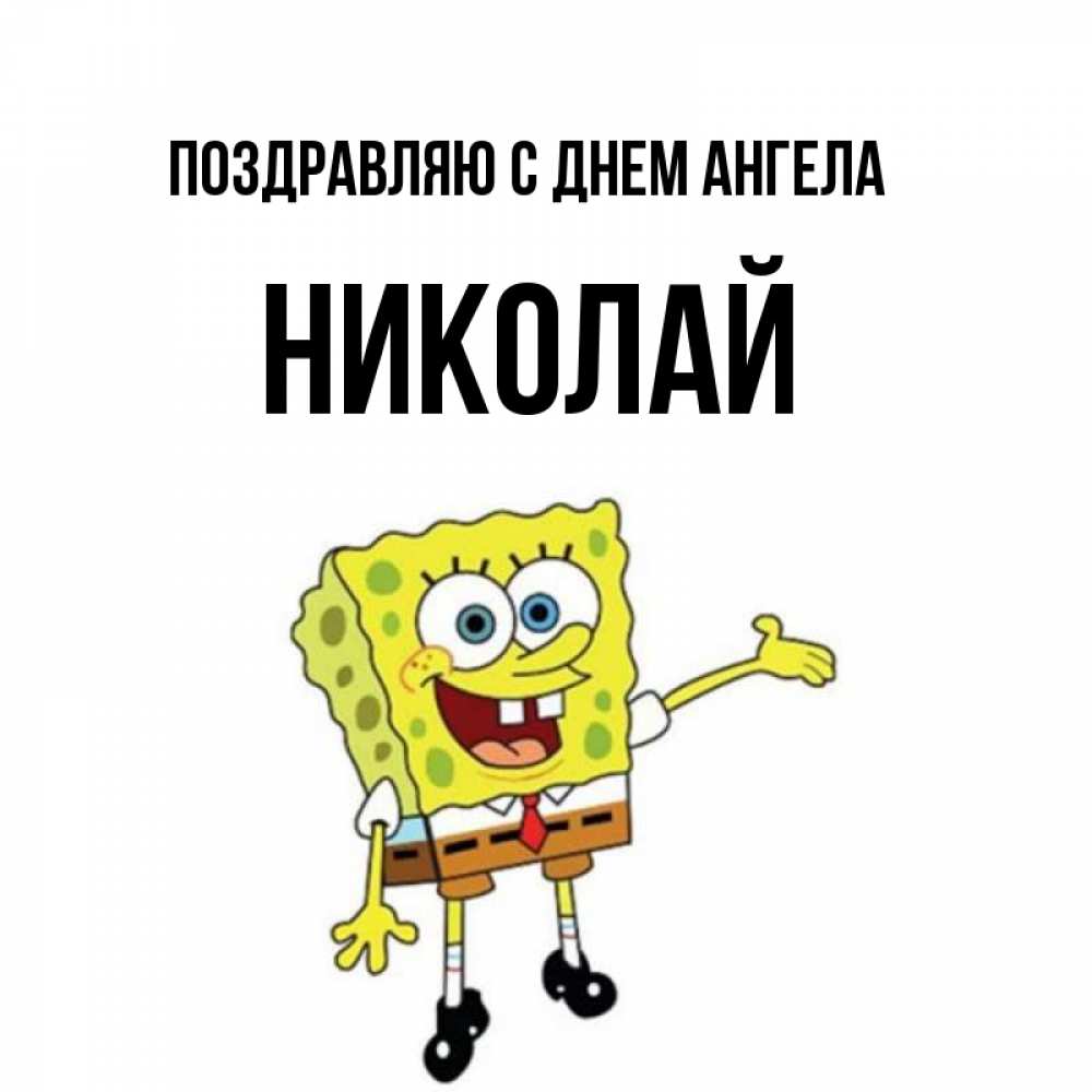 Открытка Поздравляю с днем Ангела Николай. позитивный спанч Боб. губка боб улыбается