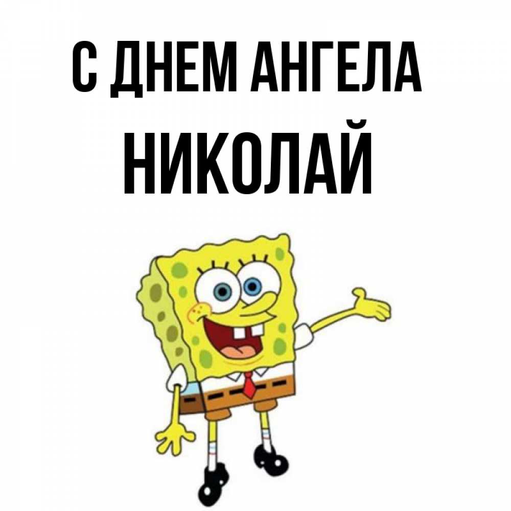 Открытка С днем Ангела Николай. позитивный спанч Боб. губка боб улыбается