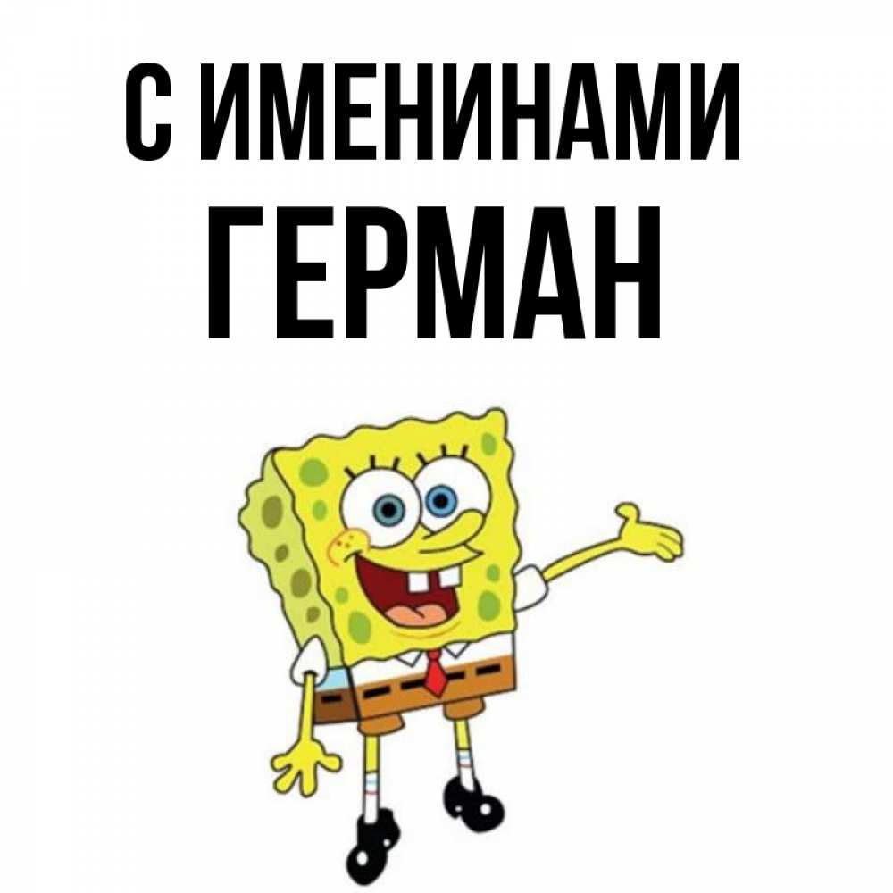 Открытка С именинами Герман. позитивный спанч Боб. губка боб улыбается