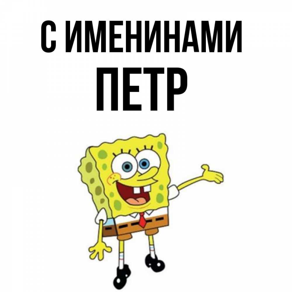 Открытка С именинами Петр. позитивный спанч Боб. губка боб улыбается