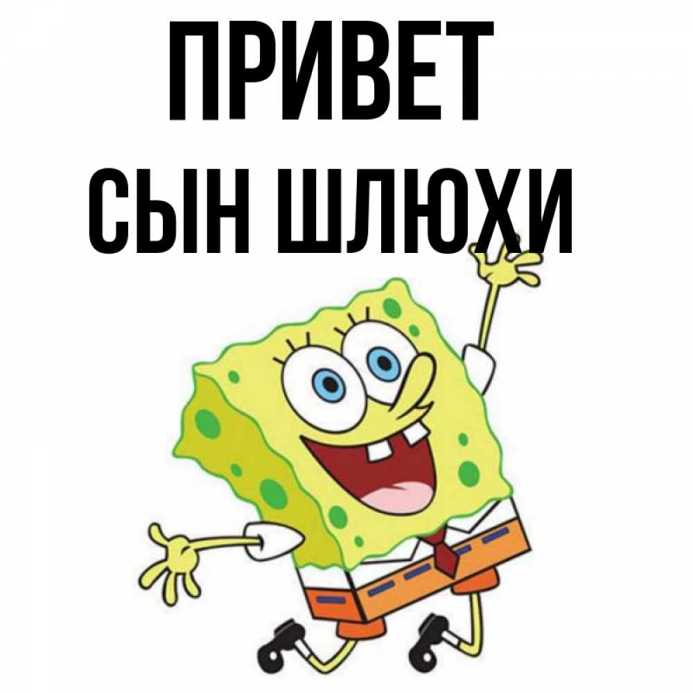 Открытка Привет Сын шлюхи. губка боб в прыжке. улыбающийся спанч Боб