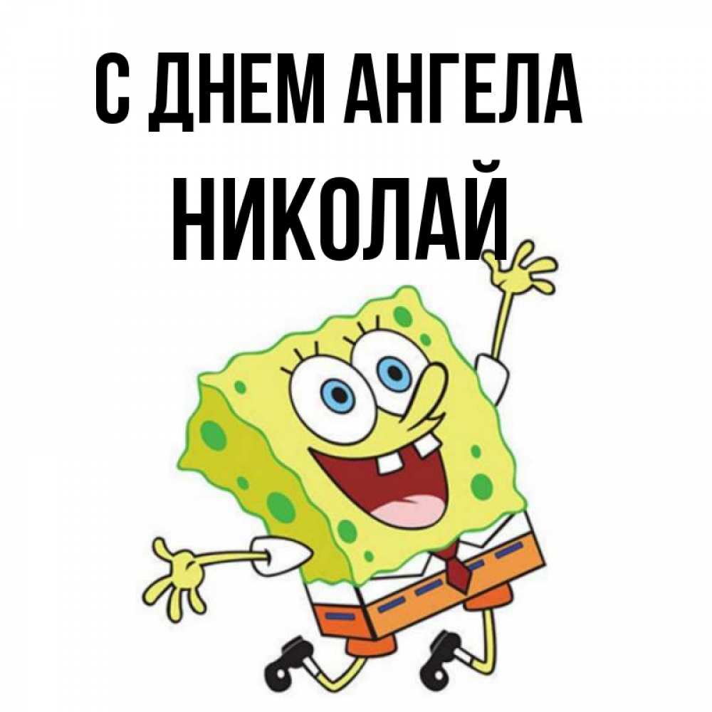 Открытка С днем Ангела Николай. губка боб в прыжке. улыбающийся спанч Боб