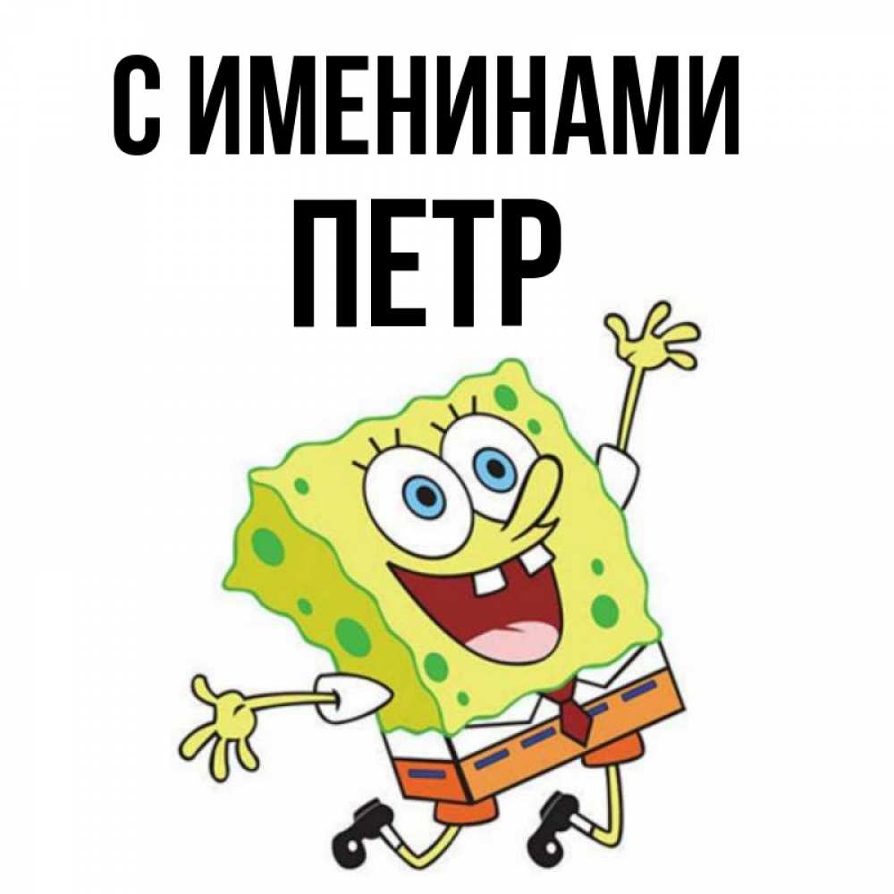 Открытка С именинами Петр. губка боб в прыжке. улыбающийся спанч Боб