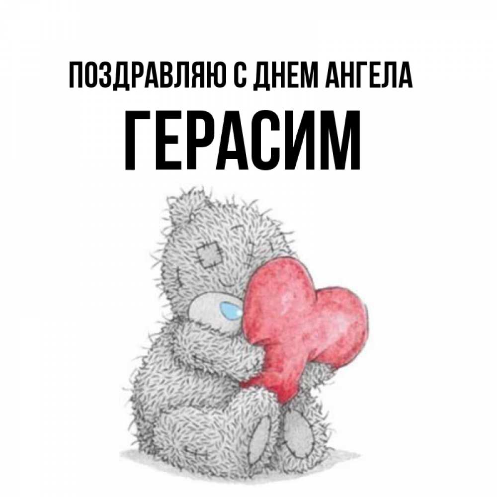 Открытка Поздравляю с днем Ангела Герасим. мишка тедди с сердечком. плюшевые игрушки