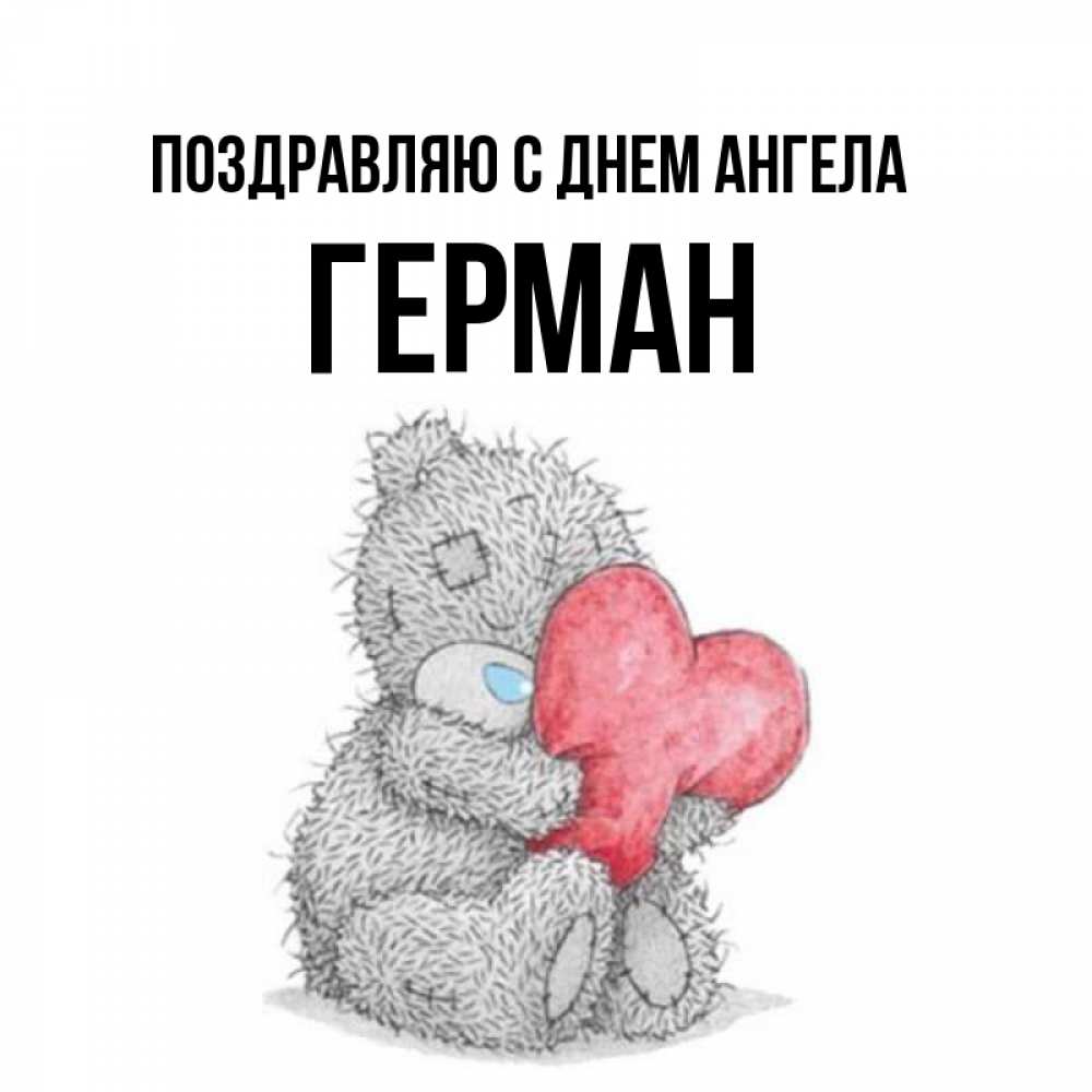Открытка Поздравляю с днем Ангела Герман. мишка тедди с сердечком. плюшевые игрушки
