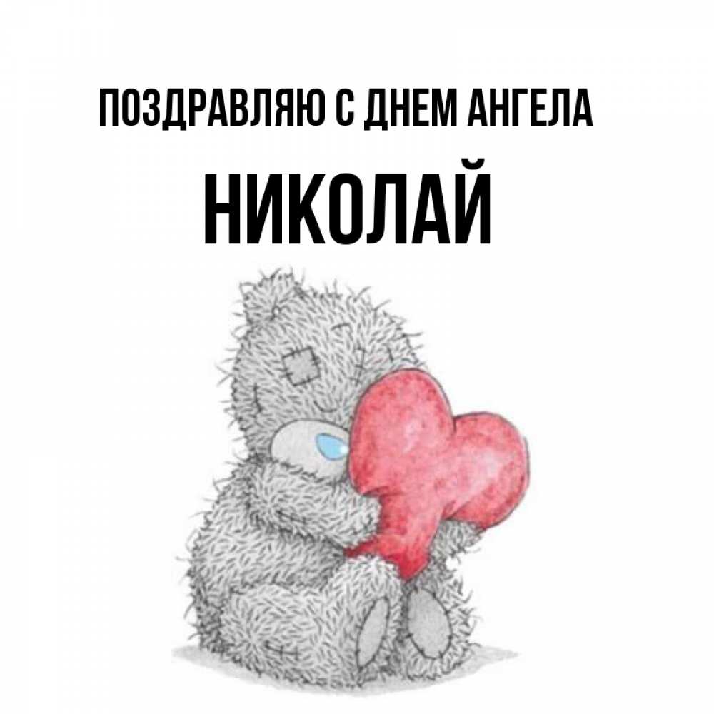 Открытка Поздравляю с днем Ангела Николай. мишка тедди с сердечком. плюшевые игрушки