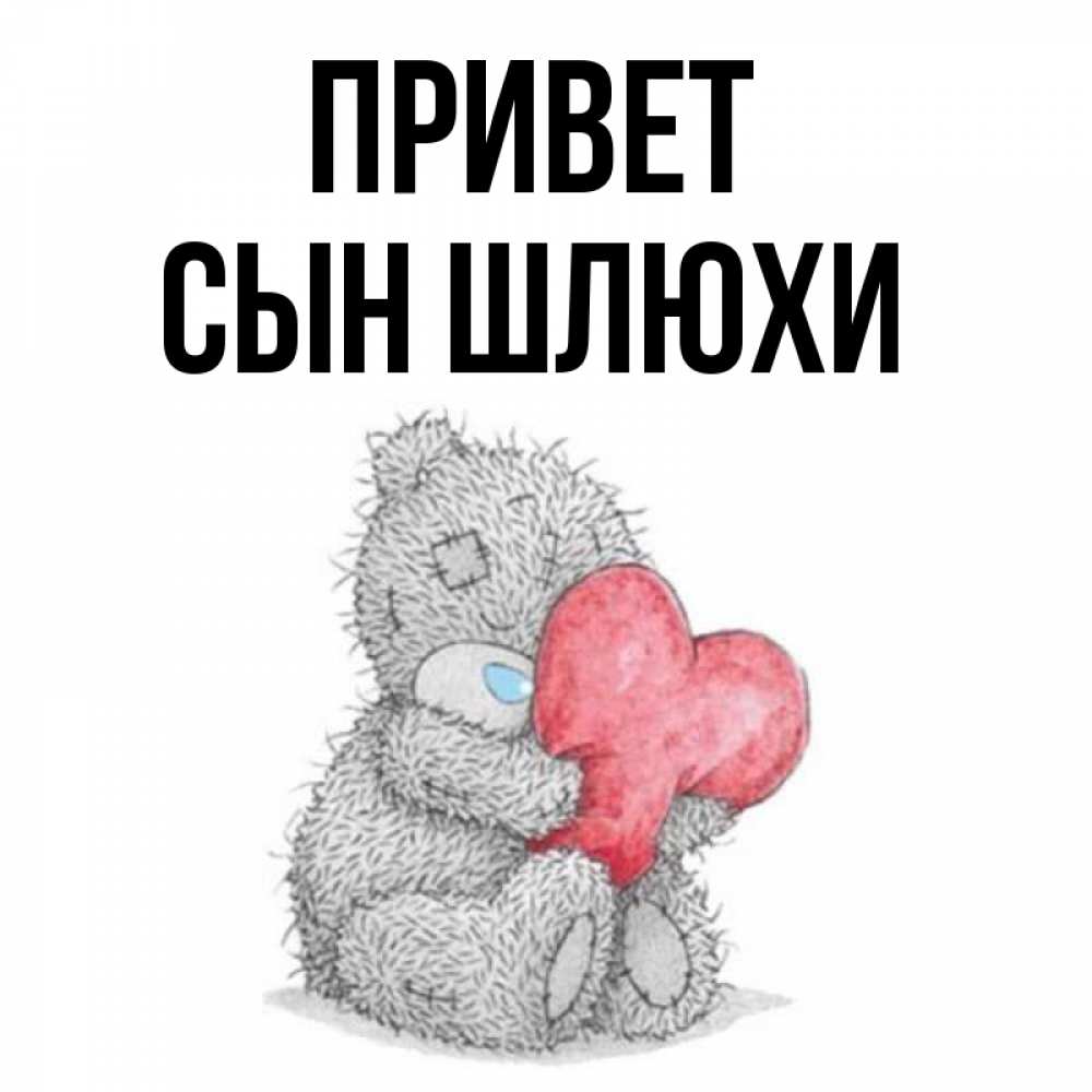 Открытка Привет Сын шлюхи. мишка тедди с сердечком. плюшевые игрушки