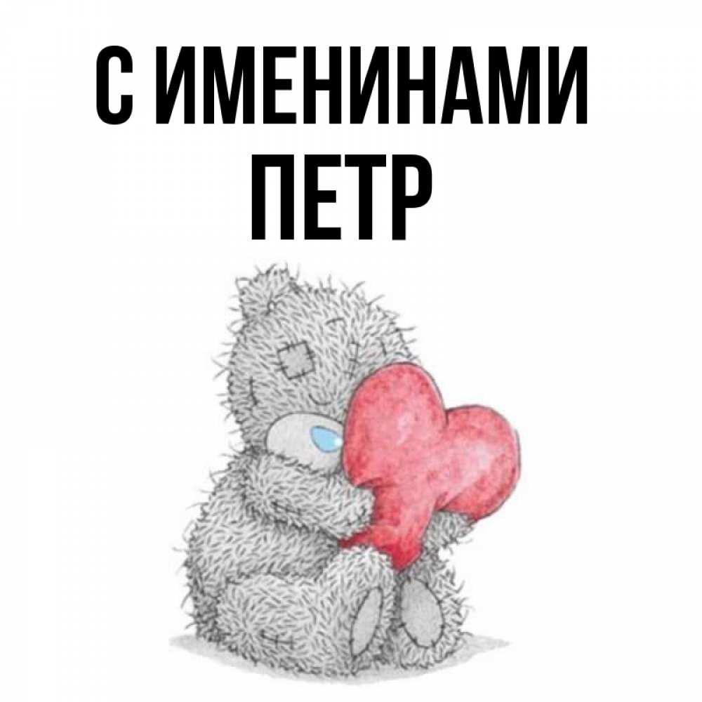 Открытка С именинами Петр. мишка тедди с сердечком. плюшевые игрушки